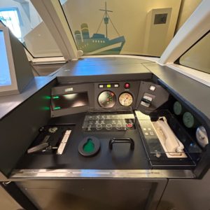 普段は見ることのできない運転台と撮影用のタッチパネル