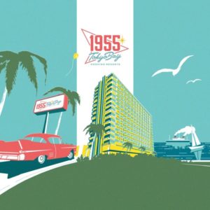リゾートのビーチストリートのような照明やサインをアクセントとし、エレベーターホールから廊下もリニューアルいたします。