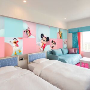1,016室の広々とした洗練された客室とスイートからは、東京ディズニーリゾートのすばらしい眺望を楽しめ、さらにホテル前には東京湾のオーシャンビューが広がります。