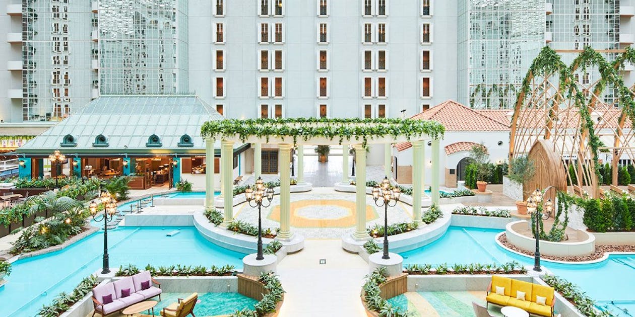 施設構成:客室数709室、 宴会場13室、 レストラン、 ウエディングチャペル2カ所、 神殿ほか