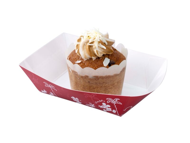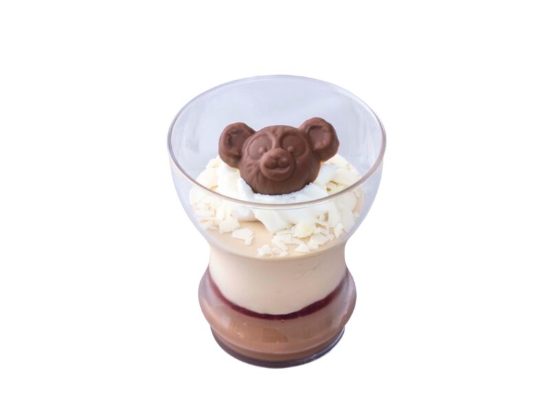 チョコと紅茶のムースには、雪の日を楽しむダッフィー&フレンズが描かれたスーベニアカップを、またチョコチップとカフェモカクリームが入ったマフィンには、スーベニアプレートを付けることができます。