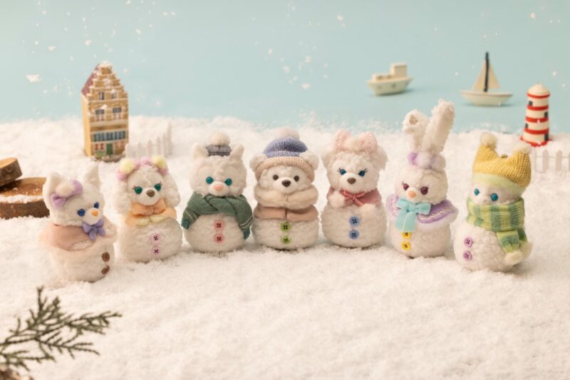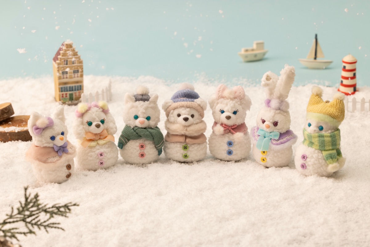 そのほか、ダッフィー&フレンズをイメージした雪だるまのグッズが登場します。コロンとした姿に気持ちがほっこりするぬいぐるみチャームは、もこもこ生地の雪だるまに、ニット帽やマフラーなど、それぞれのキャラクターに合わせあたたかな冬の恰好をしています。