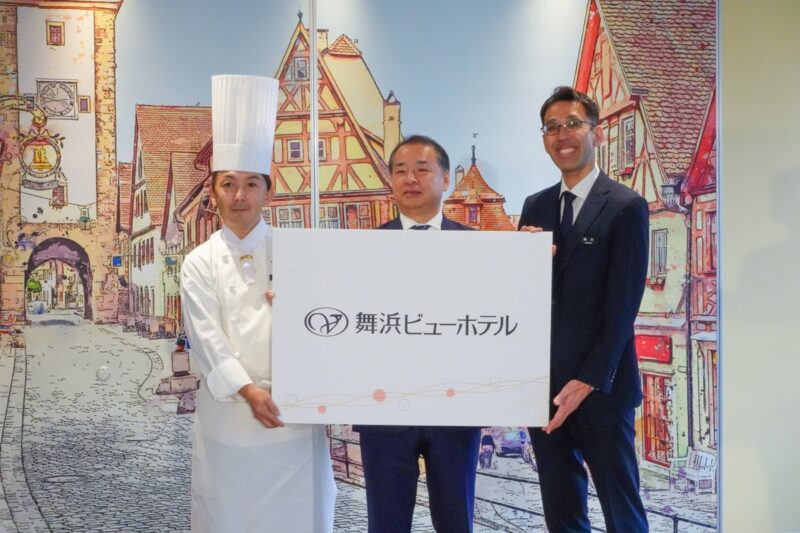 写真左から、舞浜ビューホテル by HULIC 料理長 戸井田 誠氏、ヒューリックホテルマネジメント株式会社 代表取締役社長 大町祐輔氏、舞浜ビューホテル by HULIC 総支配人 鈴木 裕樹氏。