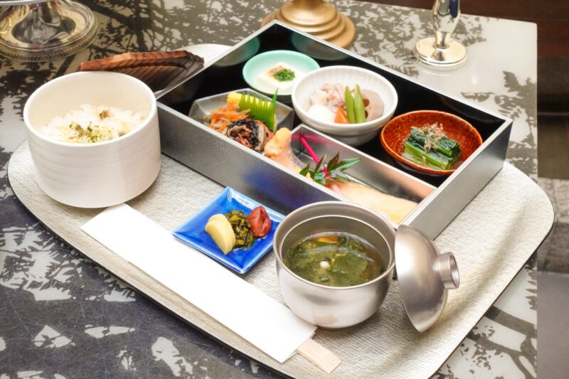 こちらは、ホテルの地元浦安の食文化、あさりを使った和食膳です。浦安は、漁師町として栄え、あさり漁が盛んだった街です。あさりの旨みたっぷりの「あさりの炊き込みご飯」と、彩り豊かな季節の小鉢がついた和食膳です。