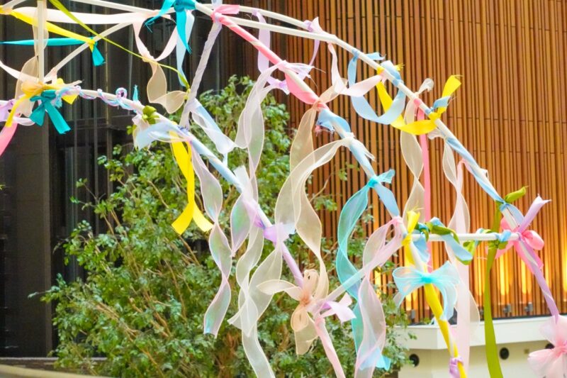 リブランドを記念して、ゲストと共に完成させる参加型アートが設置されています。色とりどりのリボンを結び、新たな“つながり”が生まれます。ここで過ごす時間とともに、ひとつひとつの色が重なり、唯一無二の作品がつむがれていく様子を楽しむことができます。また、フォトスポットとしても楽しむことができます。