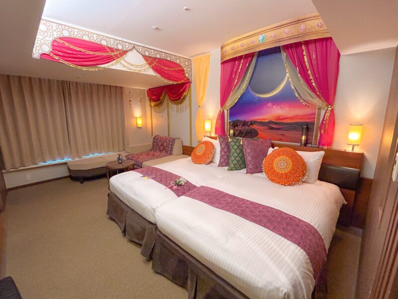 アラビアンな異国情緒を楽しめる客室です。アラブの宮殿を思わせる色鮮やかな装飾に囲まれています。