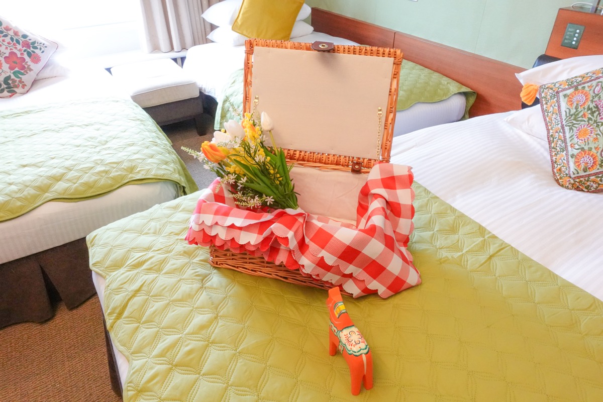 北欧に旅行に来た気分になる客室です。グリーンを基調としたヨーロッパの自然を思わせる空間です。
