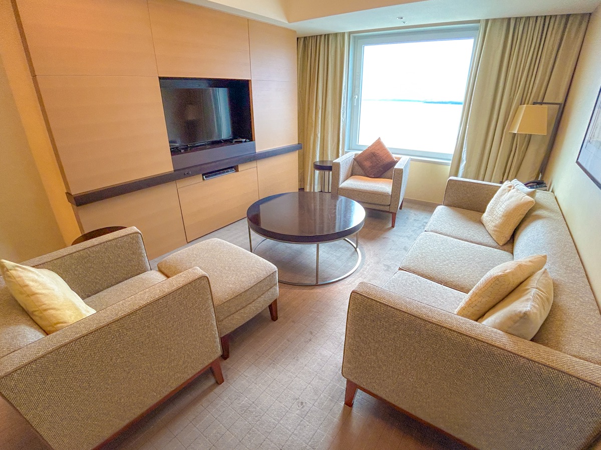 リビングルームも広々としていて、落ち着いたホテルライフが楽しめそうです