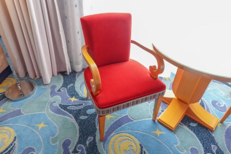 イスは、「魔法使いの弟子」になったミッキーの赤いローブをイメージしてます。