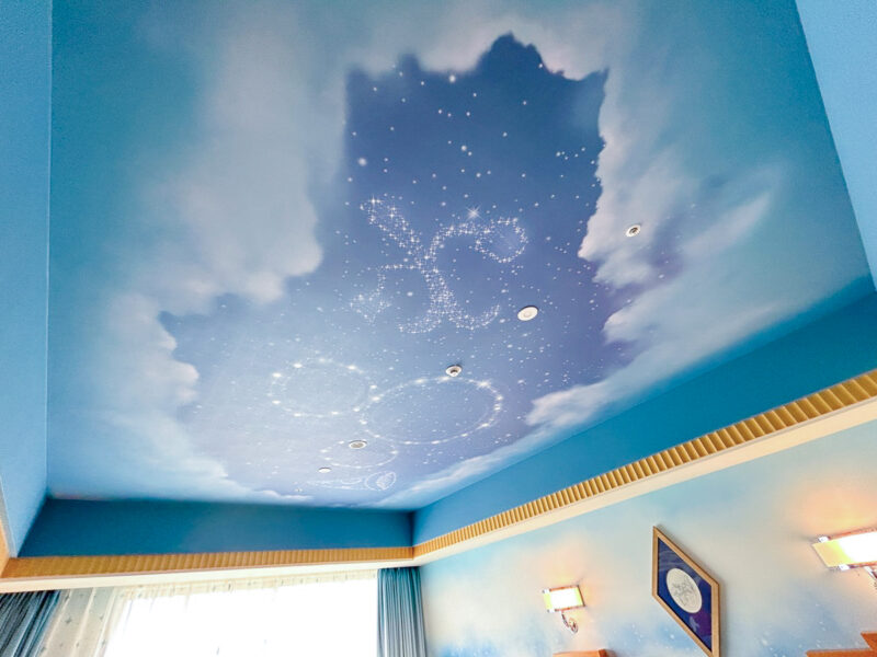 天井には、「魔法使いの弟子」に登場する、ほうきや、魔法使いの帽子が描かれています。