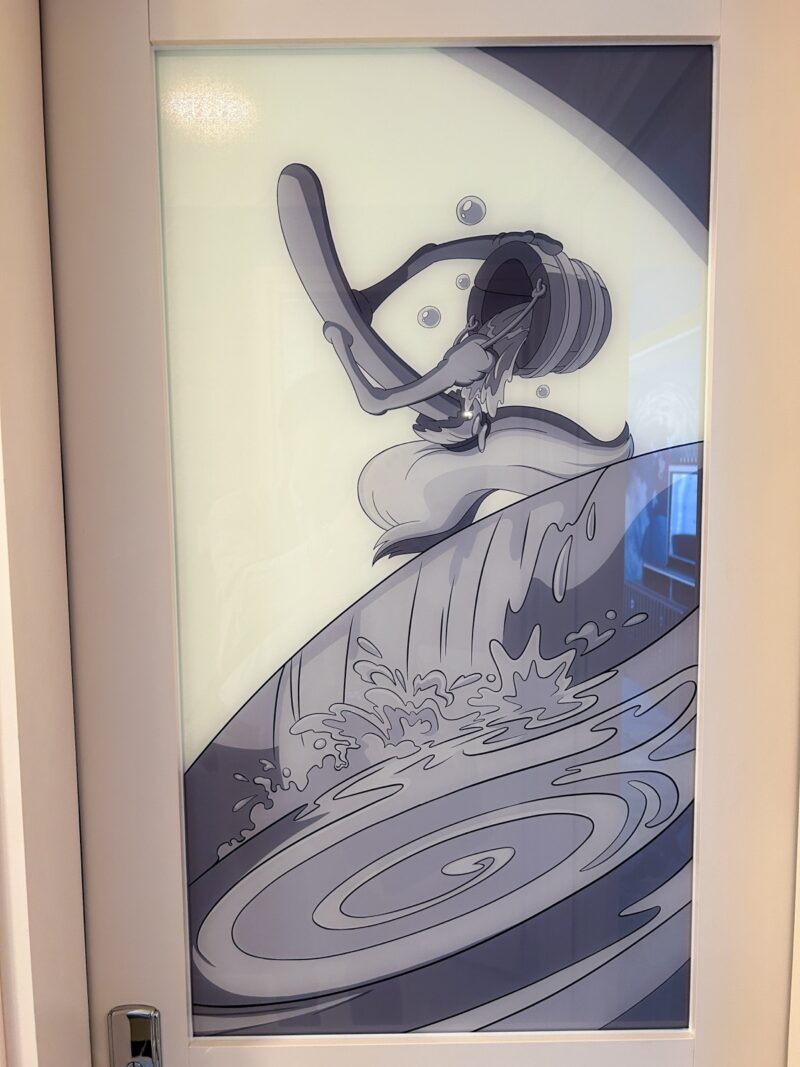 また、浴室とトイレの扉にも、「魔法使いの弟子」のワンシーンや、水汲みをするほうきが描かれています。