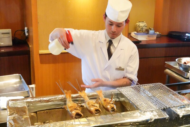のどぐろは、そもそも高級魚、脂の甘味が濃く、炭火焼きによって、旨みを中に閉じ込め、身をふっくらと仕上がることができます。カウンターからは、香ばしい香りが漂ってきて、たまりません。