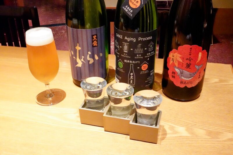 日本酒は、種類も多く、食事に何を合わせるといいか迷うところです。生ビールとお好きな日本酒を3種セレクトするセットプラン、日本酒飲み比べは、乾杯の生ビールに加えて日本酒3種類を飲み比べすることができる、お得なセットです。
