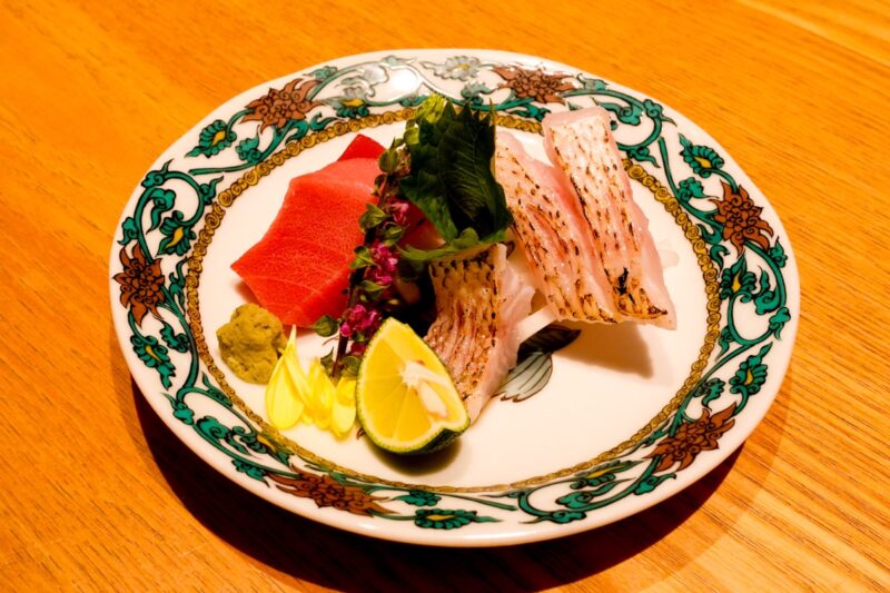 そして、ゴチになります!メニューとして、のどぐろ焼き霜が提供されています。この炙り具合が絶品で、香ばしい香りが口に広がり、次に、のどぐろの甘みがある脂がジュワッと、広がっていきます。口溶けが良く、旨味の塊のようです。