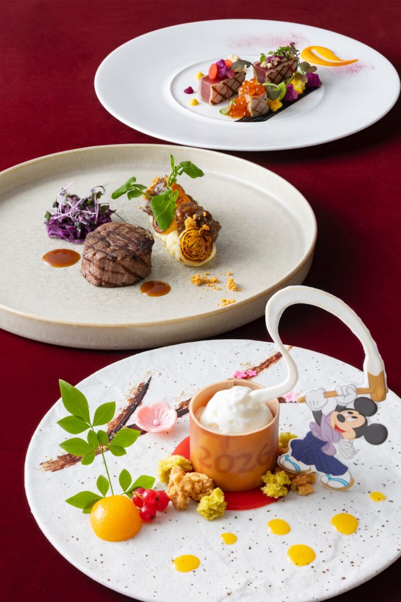3つのディズニーホテルでは、12月26日(金)から2026年1月12 日(月)までの期間、年末年始の華やかな雰囲気が感じられるスペシャルメニューが登場します。