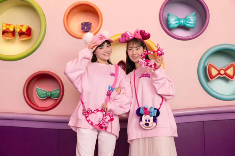 ぬいぐるみチャームやマスコットを付けてカスタマイズしてもお楽しみいただけます。また、ミニーのファンダーランドの世界観にぴったりなポップでキュートな色合いのカチューシャやキャップ、トレーナーなどファッションのポイントとなるグッズも販売します。