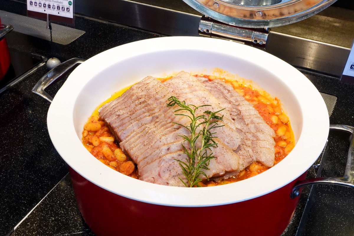 南仏の名物料理、カスレ風に仕上げた料理です。香ばしく焼いた豚肉を、白いんげん豆、トマトなどと煮込み、濃厚で温かみのある一品です。