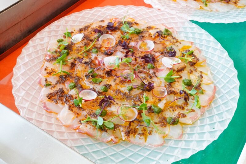 真鯛のカルパッチョ ドライトマトのピューレとソースヴェルデ