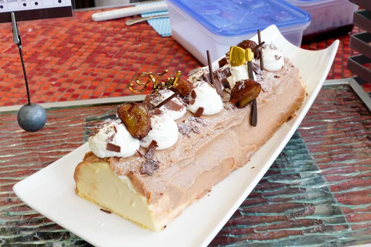クリスマスの定番といえば、やはりブッシュドノエルでしょうか。とても高さのある切り株の中身は、何層にもなる、クリームが贅沢に重ねられています。