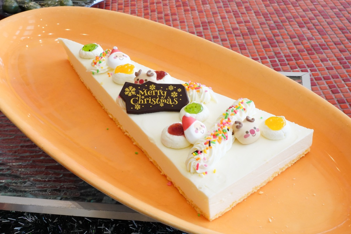 白いチョコレートムースは、クリスマスツリーの三角形にカットされています。デコレーションも可愛くて、クリスマス気分も盛り上がります。