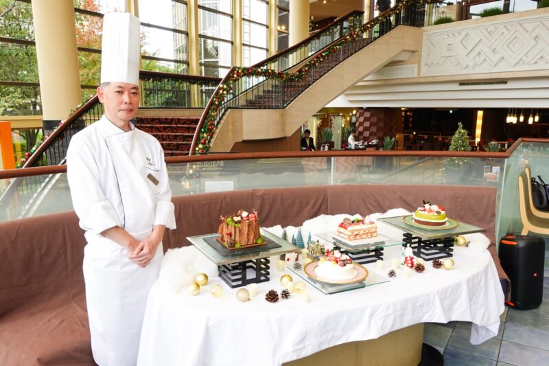 シェラトン・グランデ・トーキョーベイ・ホテルでは、2025年シェラトン クリスマスケーキコレクションの予約受付が開始されています。取材日には、エグゼクティブ ペストリーシェフの松本 猪武起氏から、コレクションの説明がありました。