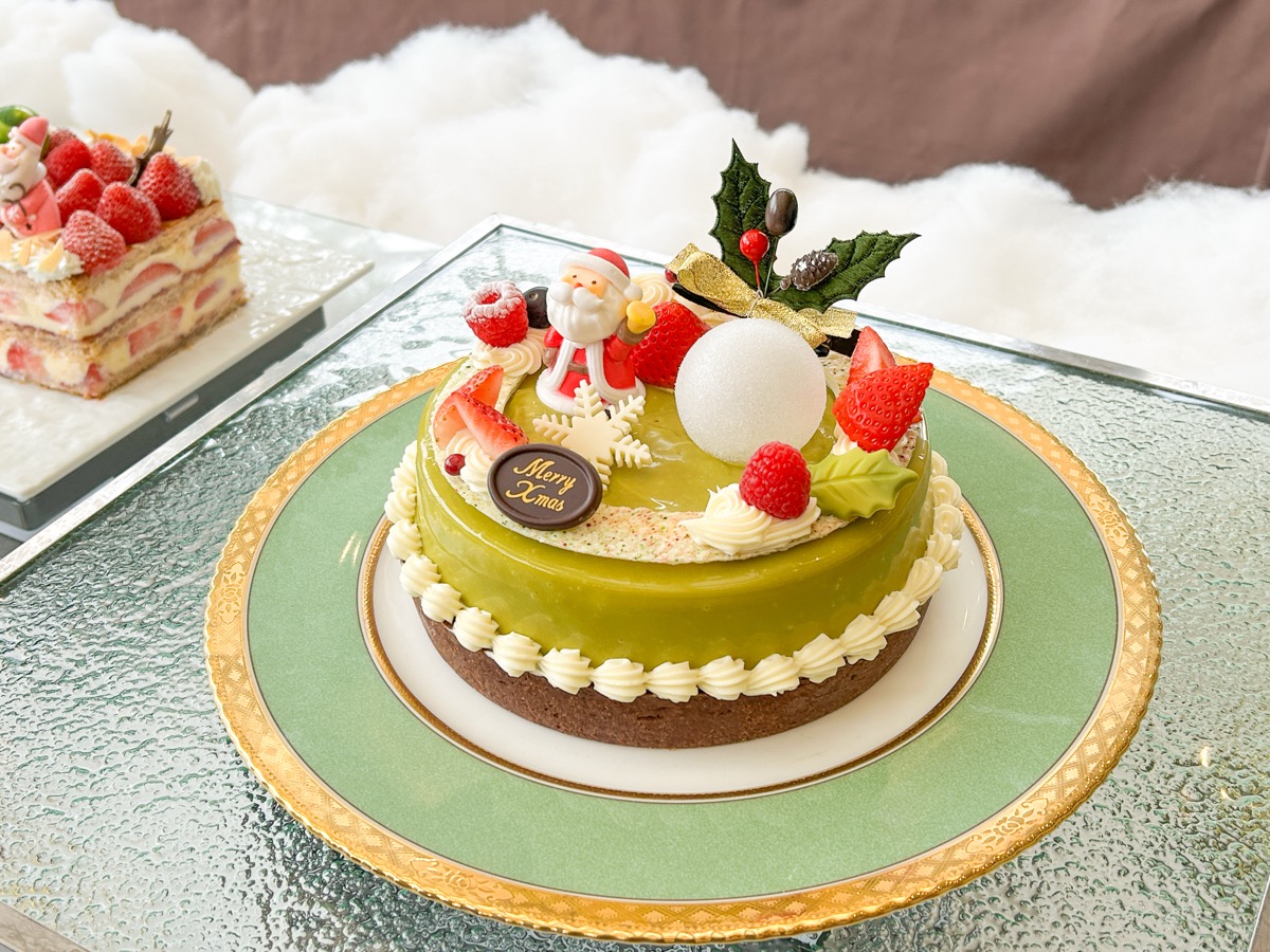 いちごとクリームの王道「クリスマスショートケーキ」、いちごを幾重にも重ねた華やかな「クリスマスミルフィーユ」、緑鮮やかなピスタチオのケーキ「クリスマスリース」、そして冬の森に佇む切り株を表現した「ブッシュドノエル」といった4種のケーキが提供されます。