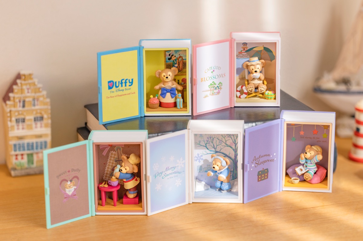 また、アルバムに見立てた本型のケースの中に、「ダッフィーデビュー(2005年)」や「ミッキーとダッフィーのスプリングヴォヤッジ(2012年)」など、過去のプログラムを思い返せるフィギュア(5種類)と20周年デザインのトランクを抱えながらこちらを見ている愛らしいダッフィーのぬいぐるみも発売します。