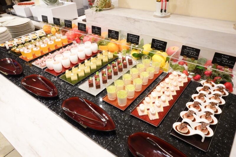 「あまおう苺スイーツ」以外にも、たくさんのスイーツが用意されています。どれも一口サイズになっているので、お腹いっぱいでも、いろいろなスイーツを楽しめるのが魅力ですね。