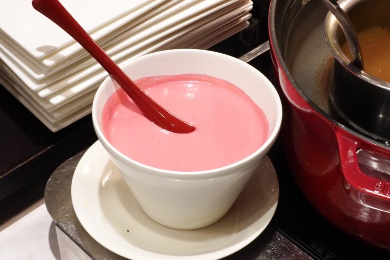 ローストビーフの基本、グレイビーソースやさっぱりと召し上がれる和風ソースなどもありますが、この冬おすすめなのは、限定の「ビーツとヨーグルトソース」です。