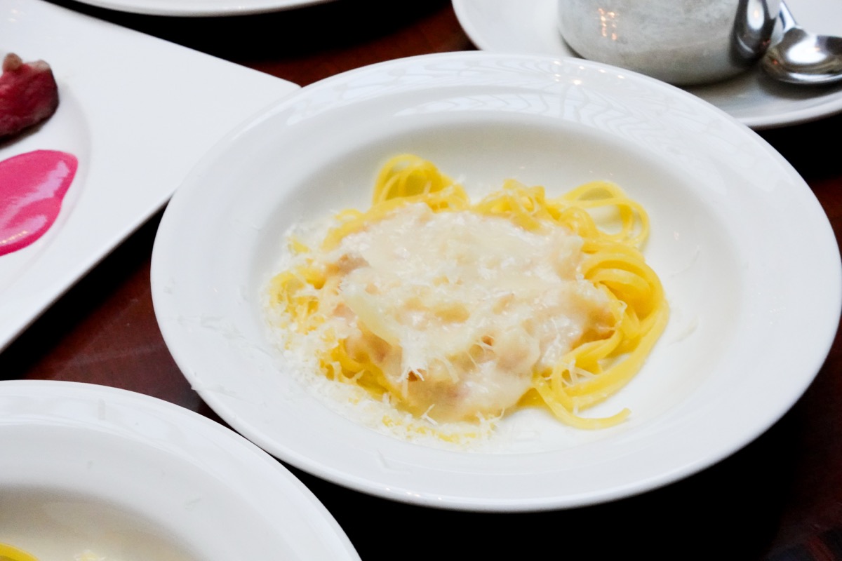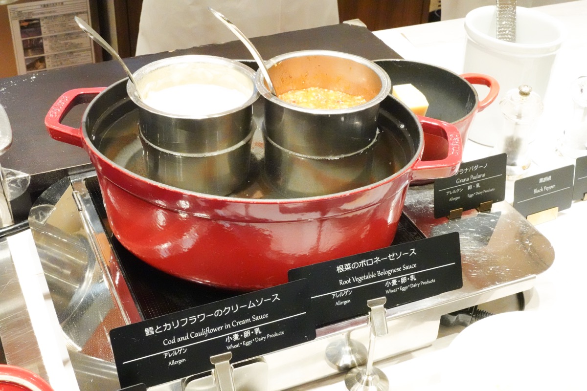「カシュカシュビュッフェ」の定番料理から、イタリア産チーズで仕上げる生パスタをご紹介します。生パスタの茹でたてが提供されていますので、生麺ならではのもちもちの食感が楽しめます。