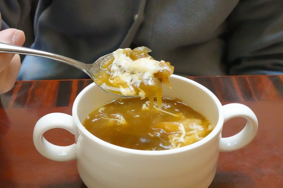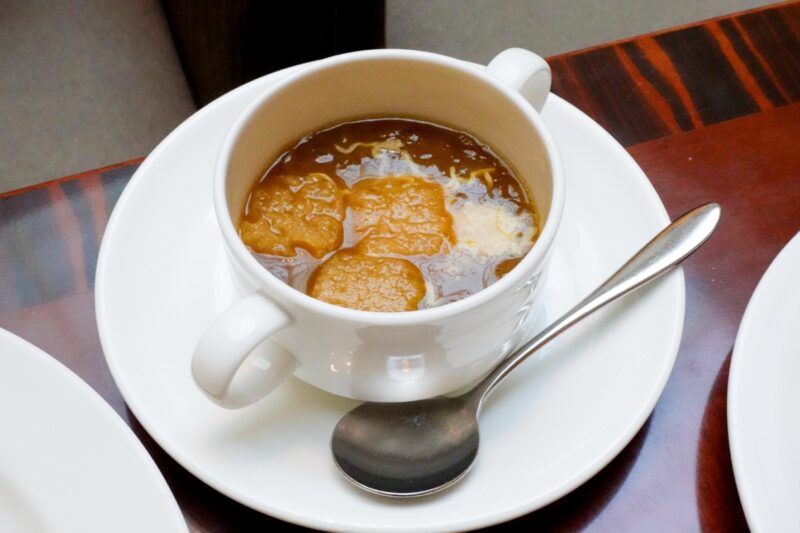 シンプルな料理ほど、ホテルの実力が出る気がします。このオニオンスープは絶品です。どれだけの玉ねぎが煮込まれているのか、濃厚な野菜の甘みが口の中いっぱいに広がるスープです。