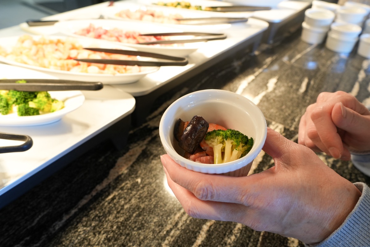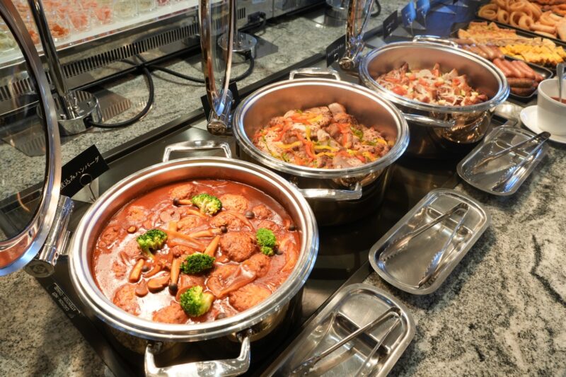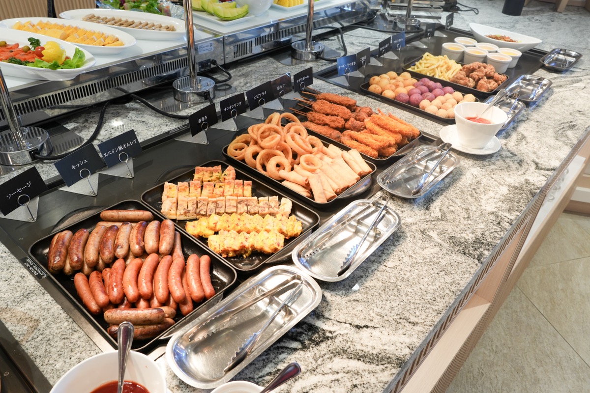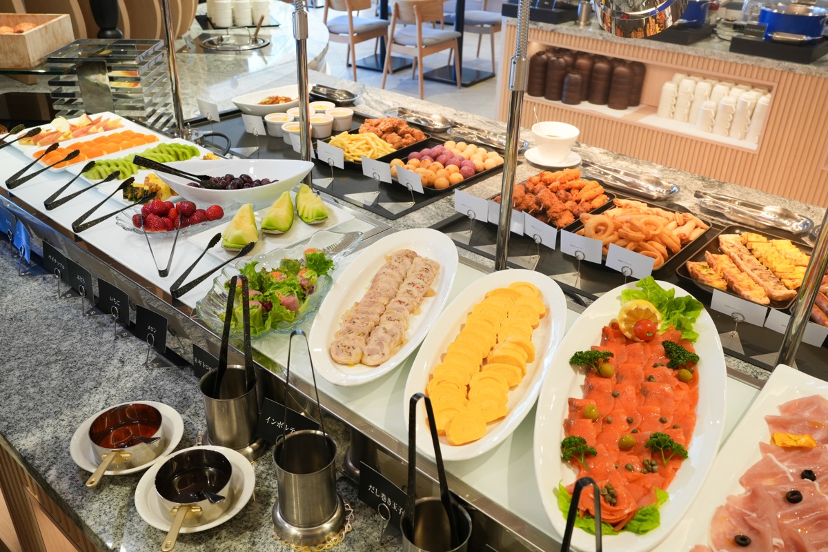 80種類の和洋中の料理が楽しめるビュッフェ形式のレストランです。シェフが目の前で仕上げる「ライブメニュー」が人気です。
