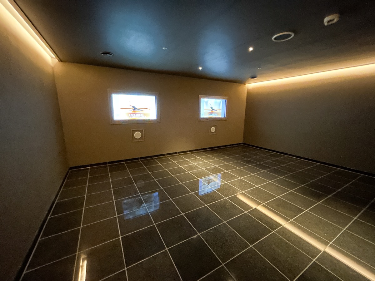 映像を見ながら、セルフでホットヨガやストレッチを行えるルームです。