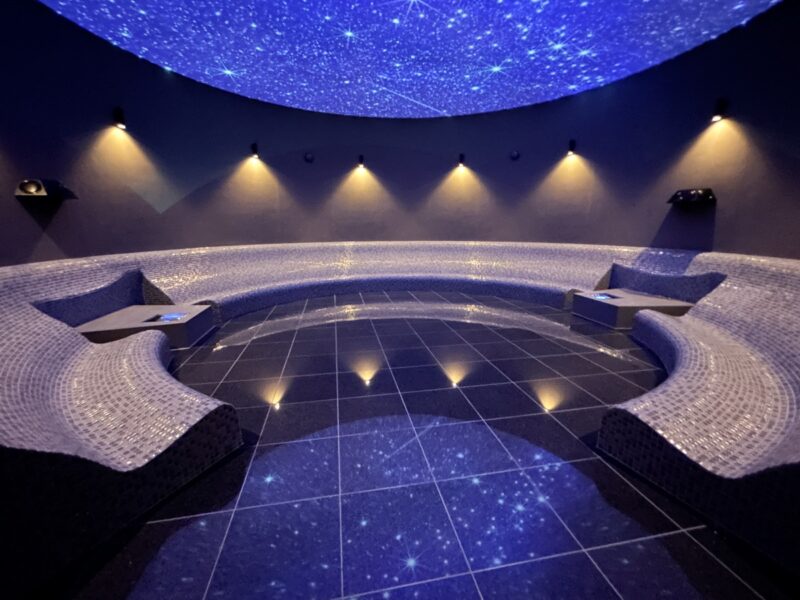 微温で静かに過ごせる空間。天井の映像が異次元へいざなうリラックスルームです。