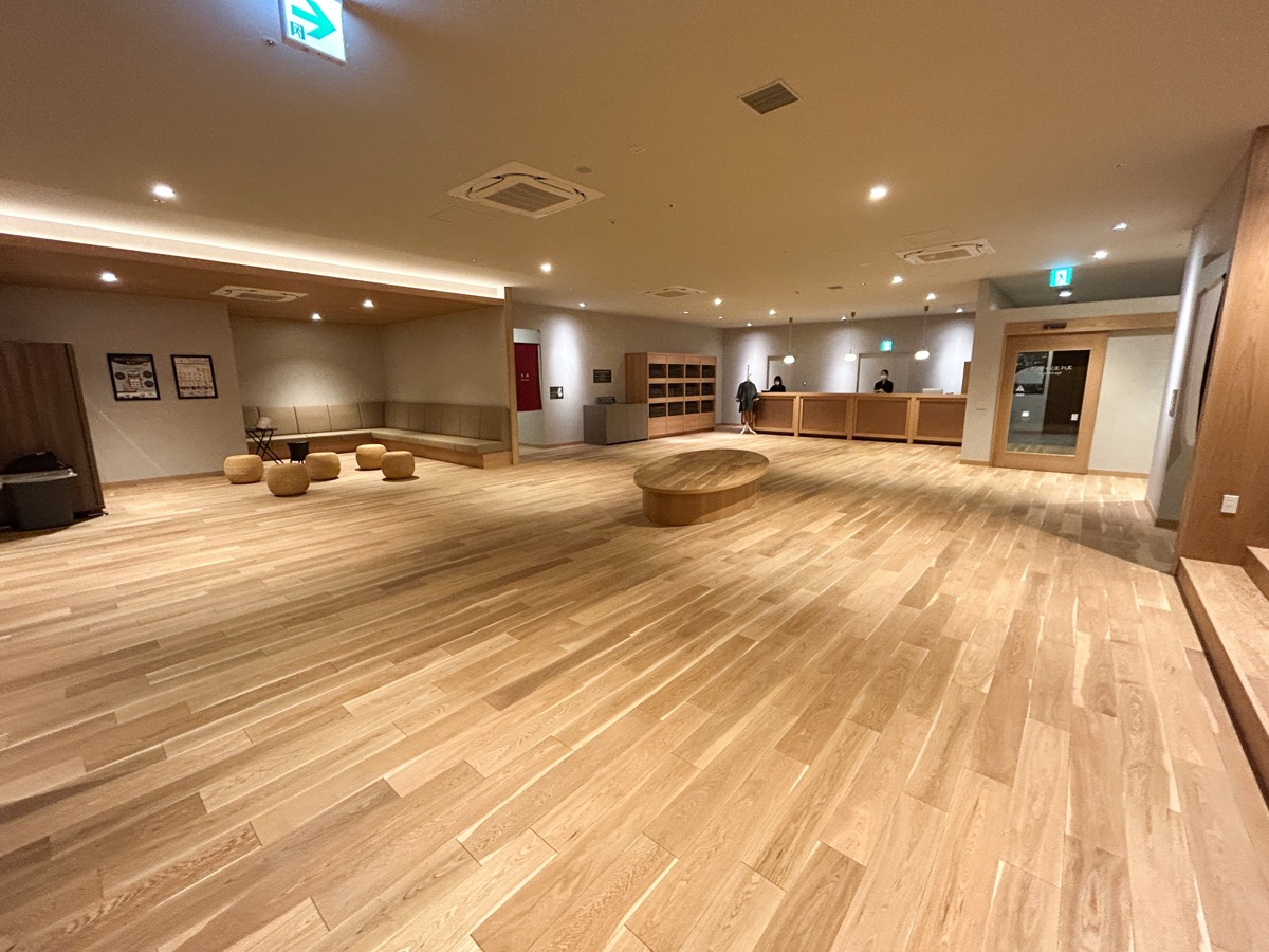 女湯(女性専用エリア)のロッカールームは、淡いカラーの木目調のインテリアで統一されています。