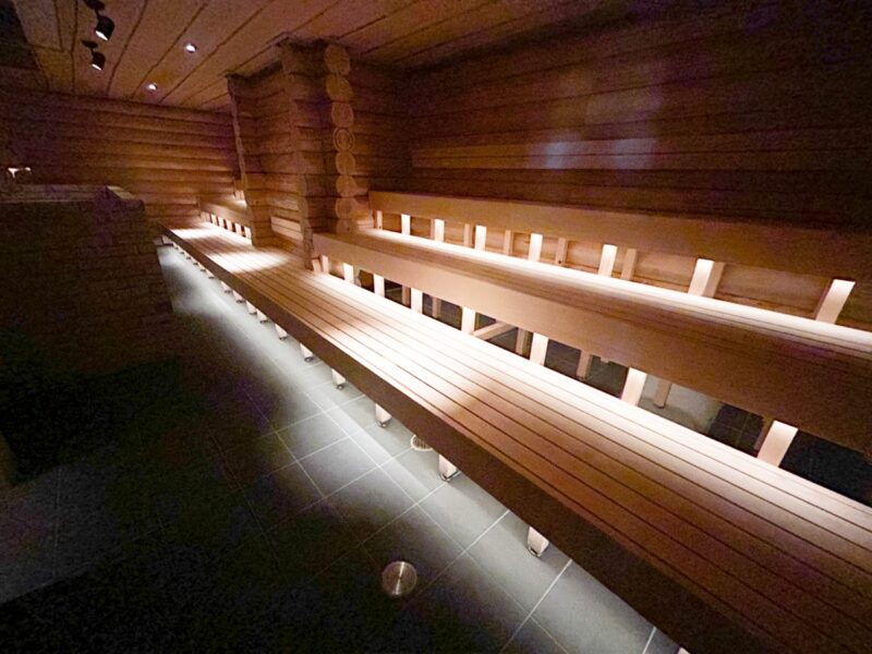 「木の宝石」と呼ばれる希少な木材「ケロ」を使用し、本場のサウナを再現しています。