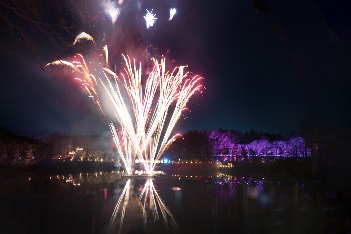 大人気の湖上花火が、この期間限定でピンクや白を基調とした「さくら色バージョン」に!オリジナルソングに合わせ、間近で打ち上がる大迫力の花火が湖面を美しく染め上げます。