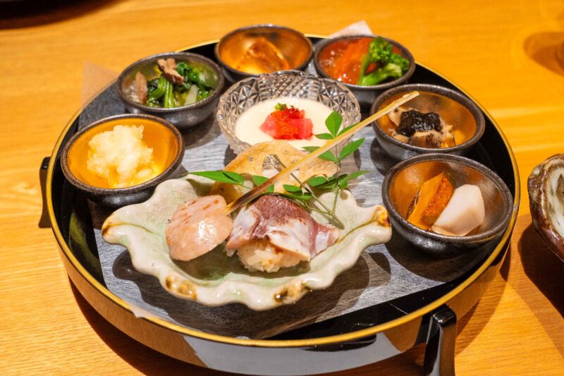まずは、今この瞬間しか味わえない季節食材を盛り込んだ前菜から始まります。