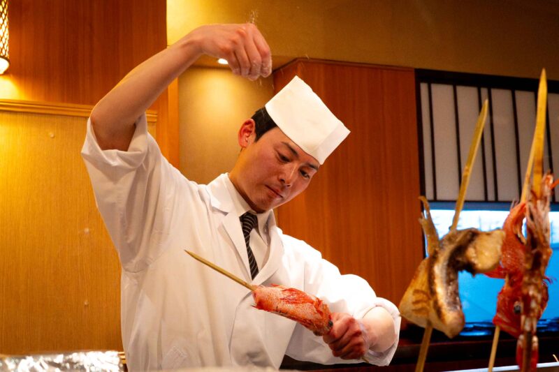 - 炙り鯖寿司: 炭の香りが食欲をそそる始まりの一品。