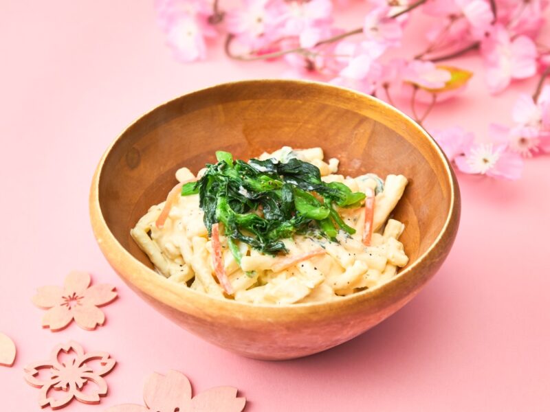- 菜の花とマカロニ玉子サラダ:定番のサラダに菜の花を加え、彩り豊かに仕上げています 。