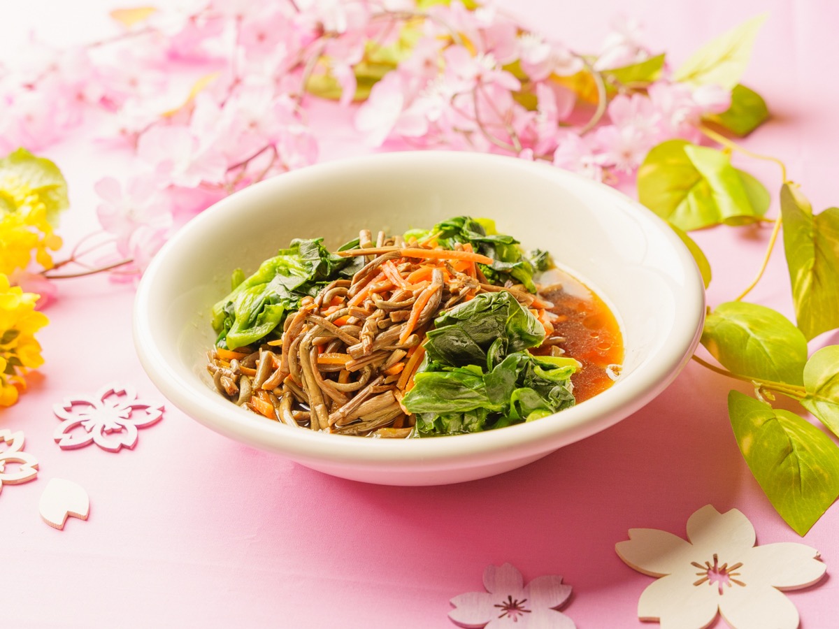 - 彩り高野豆腐春野菜添え:やさしい味わいの高野豆腐に旬の春野菜を添えた和メニュー 。