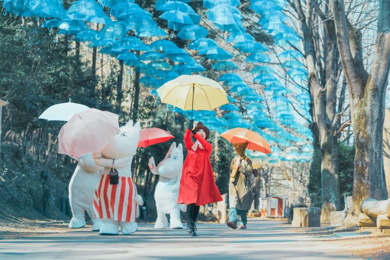 - 全長200mの圧巻のロード: エントランスからムーミン谷エリアまで、頭上を埋め尽くすカラフルなアンブレラを楽しめます。