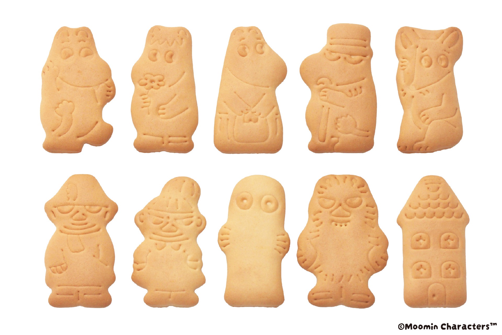 - いつでもムーミンビスケット(各54円・税込) 1/60の確率で「ご先祖さま」の形が入っているかもしれない、遊び心たっぷりのビスケット。